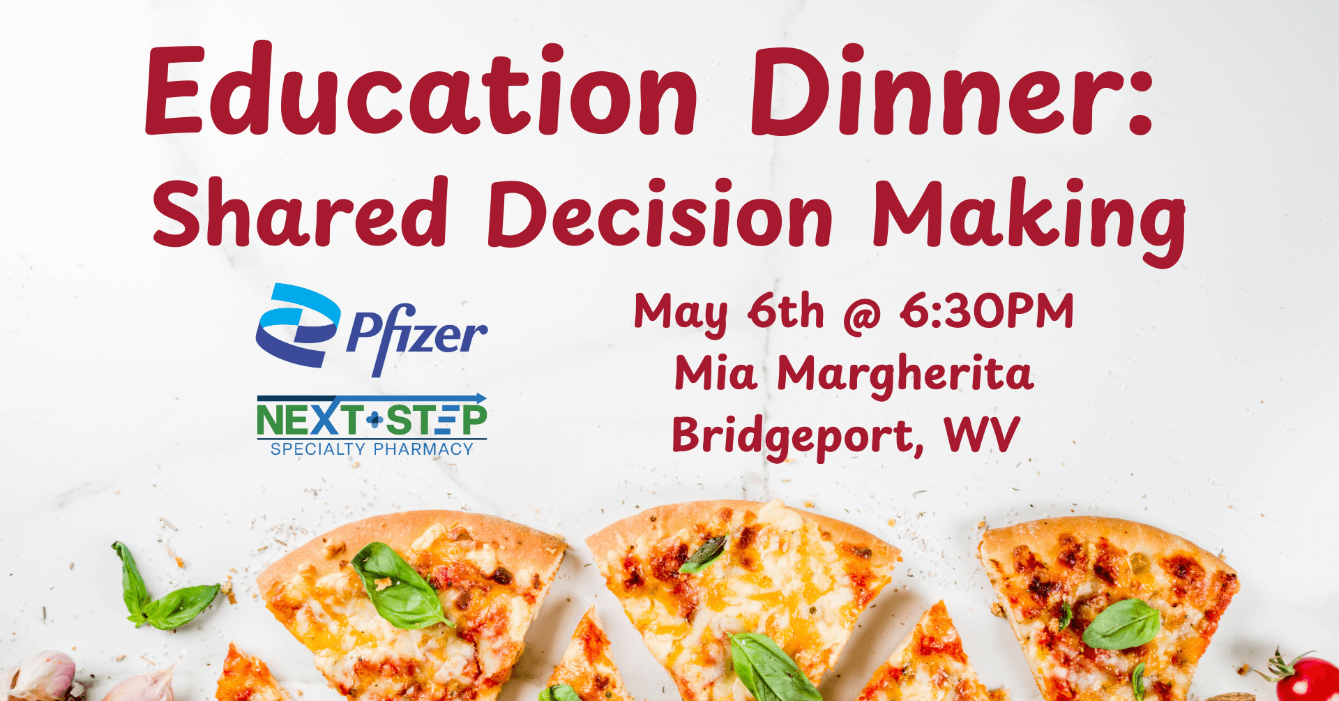 Join us at Mia Margherita for an educational dinner program focused on Shared Decision Making in bleeding disorders care. This unbranded program, hosted by Pfizer in collaboration with Next Step, will explore practical strategies to enhance patient-provider communication and improve individualized treatment planning.